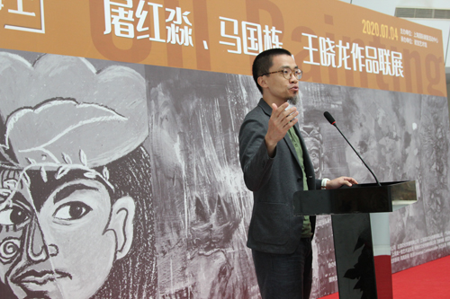 主辦方邀請到諾寶美愛電聲樂隊進行暖場,在“擁抱陽光”的樂聲中,開幕式拉開帷幕。中心主任劉海軍代表主辦方致歡迎辭,屠紅淼恩師老豆作為嘉賓代表致賀辭,屠紅淼作為藝術家代表致答謝辭。三位藝術家還向諾寶藝術館捐贈了《雪景》、《雪湖》、《踏歌行》、《桂林山水》、《點白》、《戲劇》等最新作品。中心總經(jīng)理顧秀萍、副總經(jīng)理王毅、諾寶藝術館館長馬海云代表諾寶藝術館,欣然接受了藝術家捐贈的作品。