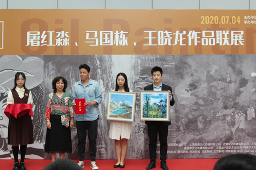 屠紅淼、馬國棟兩位藝術家還當場創(chuàng)作繪畫小品,他們手到擒來的藝術技巧,得到嘉賓們陣陣掌聲,當場創(chuàng)作的小品被三名抽獎幸運者獲得。