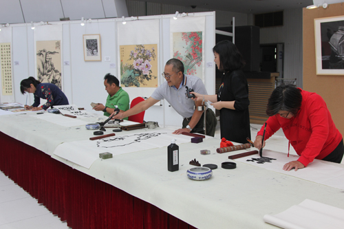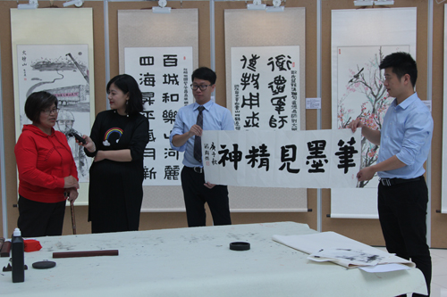 開幕式上,主持人采訪了廣州藝術(shù)家游群杰、溫健榮和上海藝術(shù)家鄭興勇、周佳藝,四位藝術(shù)家即興暢談了自己的創(chuàng)作歷程和體會,給與會者留下深刻印象。四位藝術(shù)家還將現(xiàn)場創(chuàng)作的4幅書畫作品捐贈給諾寶藝術(shù)館。