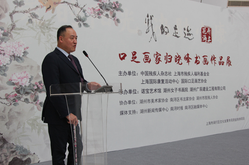 近幾年,諾寶藝術(shù)館通過“花開海上”作品展,全面展示當(dāng)代殘疾人藝術(shù)創(chuàng)作的優(yōu)秀成果,推廣在藝術(shù)創(chuàng)作方面取得成績(jī)的藝術(shù)家。今年已經(jīng)舉辦了8場(chǎng)殘疾人作品展,受到各級(jí)殘聯(lián)和廣大殘疾人的肯定。今天舉行口足畫家歸曉峰書畫作品展,進(jìn)一步體現(xiàn)了諾寶藝術(shù)館堅(jiān)持為殘疾人服務(wù)的特色和為殘疾人服務(wù)的初心。