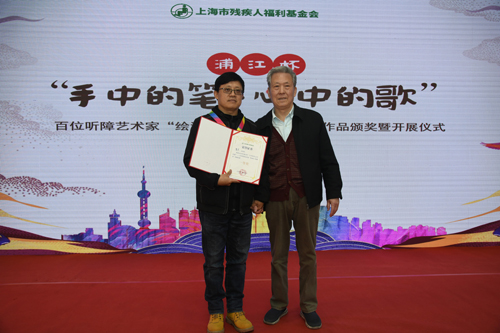 11月28日下午,由上海殘疾人福利基金會(huì)等單位主辦、上海應(yīng)用技術(shù)大學(xué)藝術(shù)與設(shè)計(jì)學(xué)院等單位承辦的滬上百位聽(tīng)障藝術(shù)家“繪浦江·助就業(yè)”大型繪畫(huà)比賽頒獎(jiǎng)典禮在諾寶藝術(shù)館隆重舉行。本次頒獎(jiǎng)典禮旨在表彰在繪畫(huà)賽事中取得優(yōu)異成績(jī)的聽(tīng)障藝術(shù)家,并向社會(huì)展現(xiàn)聽(tīng)障群體超常的樂(lè)觀、堅(jiān)強(qiáng)、奮進(jìn)的精神,給聽(tīng)障群體提供一個(gè)展示才藝的舞臺(tái),為他們提供更多就業(yè)的機(jī)會(huì)。