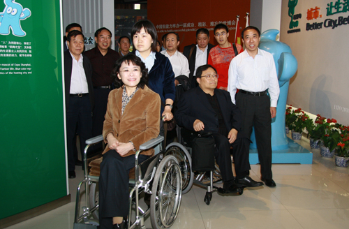 圖為中國殘聯(lián)主席張海迪一行視察世博會生命陽光館