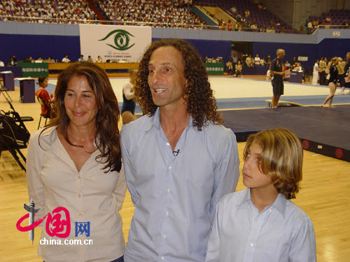 10月10日,著名薩克斯風(fēng)演奏家肯尼·基帶著家人來(lái)到上海國(guó)際體操中心觀看比賽,并與在場(chǎng)的特奧運(yùn)動(dòng)員開心交流??夏帷せ硎荆约汉荛_心來(lái)到上海,希望所有特奧運(yùn)動(dòng)員都能取得好成績(jī)??夏帷せ舜蝸?lái)到上海是參加閉幕式的表演活動(dòng)。觀看完比賽,肯尼·基就離開賽場(chǎng),趕往閉幕式的體育場(chǎng)館進(jìn)行彩排。