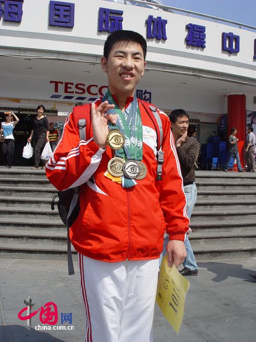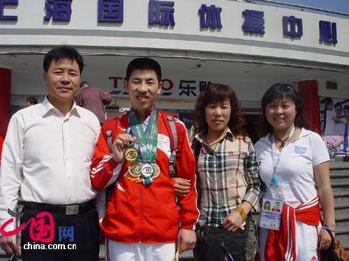 10月10日下午,來自山西的特奧運動員韓少輝在父母和教練的陪同下,來到上海國際體操中心參加頒獎儀式。在本次特奧會上韓少輝取得了1金1銀2銅的好成績。韓少輝很小就進入了體校開始訓練,身體素質(zhì)非常好,曾參加過多次的特奧會,并取得了非常優(yōu)異的成績。韓少輝的父母說,韓少輝是一個特別上進的孩子,在家里非常聽話,經(jīng)常幫父母親做家務(wù),進入體校訓練也特別能吃苦。身上手上有很多的訓練留下的傷痕和老繭,但是對于這些,他都沒有喊過痛,說過苦。一直堅持訓練,希望能在比賽上取得良好的成績。韓少輝跟記者說,來上海參加特奧會比賽,他一點也不緊張,取得現(xiàn)在這樣的成績,他覺得很滿意。他希望參加完閉幕式,回到學校,再繼續(xù)訓練,爭取在下次的特奧會上取得更好的成績。(文/圖 中國網(wǎng) 安磊)