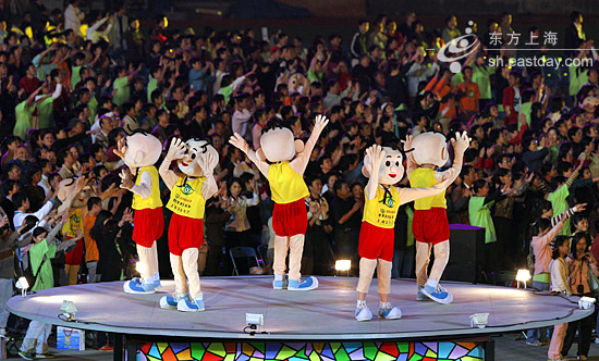 觀眾不用拿道具,所有的家伙都集中到了志愿者手中。志愿者身穿綠色T恤,站在舞臺四周、座位旁邊、看臺的走廊上。他們一會揮舞熒光棒,一會跟著節(jié)奏左右搖晃彩帶;跳操的時候,不但要帶頭跳,還要鼓動觀眾站起來;閉幕式最后跳集體舞時,也是他們首當(dāng)其中,牽手跳起圓圈舞。如果不是這群可愛的自愿者在中間穿針引線,點燃大家的激情,含蓄的中國觀眾不會這樣直接熱烈地抒發(fā)自己的感情。(記者蔣佳佳、曹子琛)