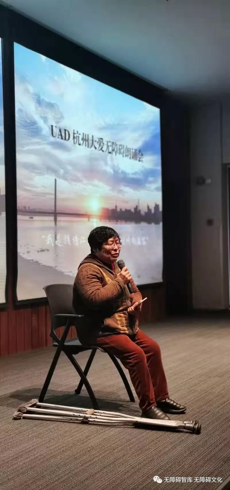 配合拍攝,由杭州市無障礙促進會協(xié)助UAD無障礙研究所主辦了UAD大愛無障礙朗誦會,節(jié)目豐富多彩,除殘障人士表演的朗誦外,還有輪椅夫婦的輪椅舞、盲人琵琶表演和來自杭州嘉綠苑中學(xué)學(xué)生的朗誦等,氣氛非?;钴S。UAD還貼心地為來賓準備了茶食。當(dāng)天錄制的部分鏡頭會插入到紀錄片中,給這部以反映問題為主題的片子增添了一抹亮色。UAD黨委書記呂淼華抱病前來觀摩,受現(xiàn)場氣氛感染,表示這樣的活動今后要多多舉辦。