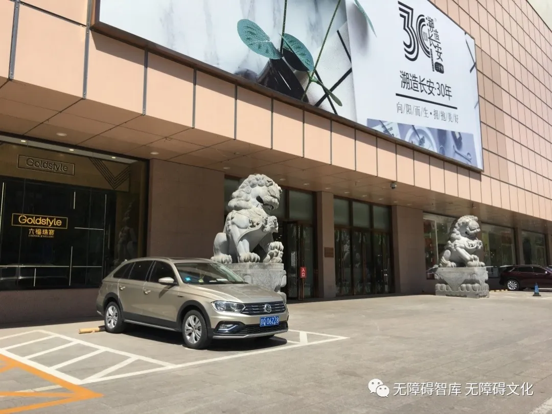 歷時(shí)8個(gè)月的全面改造提升,長安商場的無障礙改造升級可謂是面面俱到。首先我們來到了長安商場的停車場進(jìn)行體驗(yàn)。在我國國標(biāo)GB50763-2012規(guī)范中要求,每100個(gè)停車位里,需要設(shè)置一個(gè)無障礙停車位,不滿足100個(gè)停車位時(shí)也應(yīng)設(shè)置至少1個(gè)無障礙停車位。長安商場的總停車位有90余個(gè),同時(shí)設(shè)置了4個(gè)無障礙停車位,這個(gè)數(shù)量遠(yuǎn)遠(yuǎn)高于現(xiàn)有的國標(biāo)要求。另外長安商場的無障礙停車位都是按照國標(biāo)里要求的,把銜接處最方便進(jìn)出的車位設(shè)置成無障礙停車位,無障礙停車位的兩側(cè)同時(shí)留有1.2米的輪椅區(qū)域,方便輪椅人士上下車。也高于了國標(biāo)要求的“無障礙車位一側(cè)留有1.2米的輪椅區(qū)域”,可見長安商場對身障人士的出行購物,娛樂需求的重視程度。不過作為一名無障礙研修營的學(xué)員來說,個(gè)人還是希望能在車場的出入口,停車場轉(zhuǎn)角處,都設(shè)置無障礙相關(guān)的引導(dǎo)標(biāo)識(shí)。在地面設(shè)置無障礙標(biāo)志的同時(shí),車位前方也應(yīng)設(shè)立不小于1.5米高的標(biāo)志牌。這些都能讓自駕車來商場的身障人士方便快捷的找到無障礙停車位。