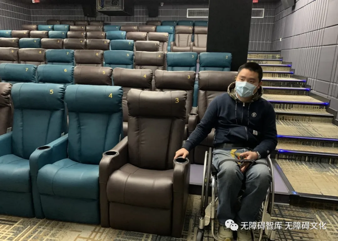長安商場五層還設(shè)有無障礙電影院,每個(gè)影廳的第一排都設(shè)有兩個(gè)可拆卸移動(dòng)的無障礙輪椅席位,當(dāng)有輪椅使用者來觀影的時(shí)候把座椅移開即可,方便輪椅人士進(jìn)入體驗(yàn),在沒有輪椅使用者的時(shí)候,它就是一個(gè)普通席位,也不會(huì)影響健全人士的觀影體驗(yàn),同時(shí)極大滿足了輪椅使用者的觀影需求。作為一名輪椅體驗(yàn)者的我,看到這樣的設(shè)計(jì)當(dāng)然非常高興,同時(shí)也跟影院方面的工作人員交換了一些我的想法,畢竟作為輪椅使用者,每次觀影的時(shí)候都需要專人協(xié)助移動(dòng)椅子,對于身障者自己來說,總會(huì)感覺給別人添麻煩,不好意思的感覺。如果把觀影廳無障礙席位的椅子換成向后折疊式的固定座椅,同時(shí)地面設(shè)置無障礙輪椅標(biāo)識(shí),有輪椅使用者觀影時(shí)直接可以進(jìn)入,不需要專人服務(wù),平時(shí)也不會(huì)妨礙健全人的使用。另外在購票選位時(shí)就能有相應(yīng)的無障礙坐席提示,更加提升使用者的觀影感受。
