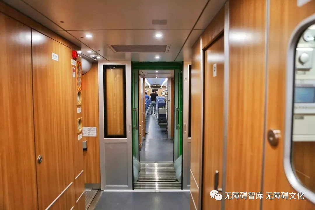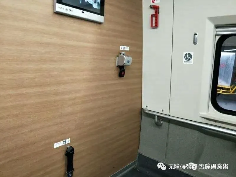 為什么要有“無障礙座席”呢?常乘“和諧號”高鐵列車的朋友可能都注意到了,在無障礙車廂除了有寬敞的適合輪椅者使用的無障礙衛(wèi)生間外,在車廂靠近“無障礙衛(wèi)生間”處還有一個輪椅席位。輪椅乘客可以轉(zhuǎn)移到座位上也可以直接坐在輪椅上,旁邊墻上還有輪椅固定帶、扶手和呼叫器等。如果是在普通的車廂左右兩排座椅,高鐵二等座車廂過道的寬度是600mm,一般普通輪椅是無法通行的,所以如果購買不到“殘疾人專用座席”或列車上沒有此類“無障礙座席”,輪椅乘客往往只能在車門對面處或兩車連接處委曲著了,這對長途旅行的輪椅人士來說,無疑是一種痛苦!
