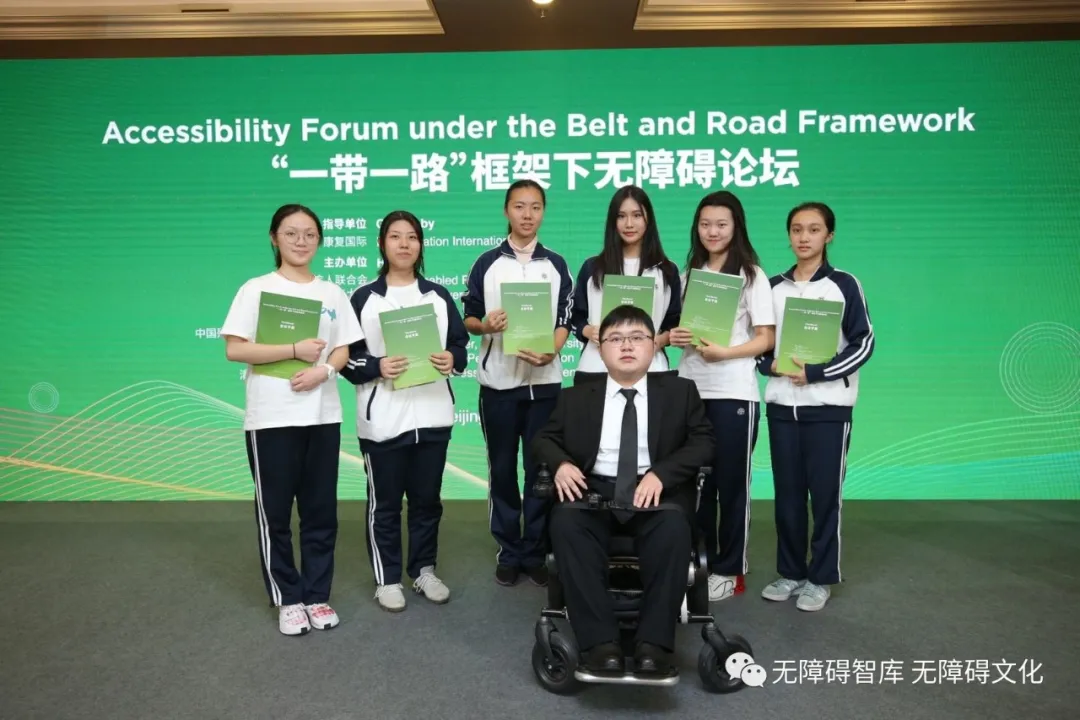 圖15:中國青少年無障礙使團代表參加“一帶一路”框架下無障礙論壇驚喜 、振奮、希望……聽了清華大學學生無障礙研究協(xié)會和中國青少年無障礙使團的匯報與暢想,中國殘聯(lián)副主席、中國殘聯(lián)無障礙環(huán)境建設推進辦公室主任呂世明連稱“驚喜”!青年學子情懷可嘉、后生可敬!他感慨地回憶起30多年前參加中國殘聯(lián)第一次代表大會時的情形,那時殘疾人使用的輔具是什么樣子的,拐杖是用樹枝或木頭做的;根本沒有輪椅,實在走不了的,有的家里人用一塊小木板加上四個小木頭輪子做成平板車;還有的是爬著蹲著進入人民大會堂會場的;那時穿著都是很普通……在各種各樣的困境下,只有精神和斗志挺立不倒!今非昔比,翻天覆地,幸福無比!呂世明接著說,今天能聽到青年學子侃侃而談無障礙,真是喜上心頭,激動不已!青少年是無障礙事業(yè)的未來和希望,是中國的未來和希望,相信今天你們是“一枝獨秀”,傳播“平等、融合、包容、共享”的無障礙理念,你們是領軍是旗手,在不遠的將來一定會迎來姹紫嫣紅的花開滿園!