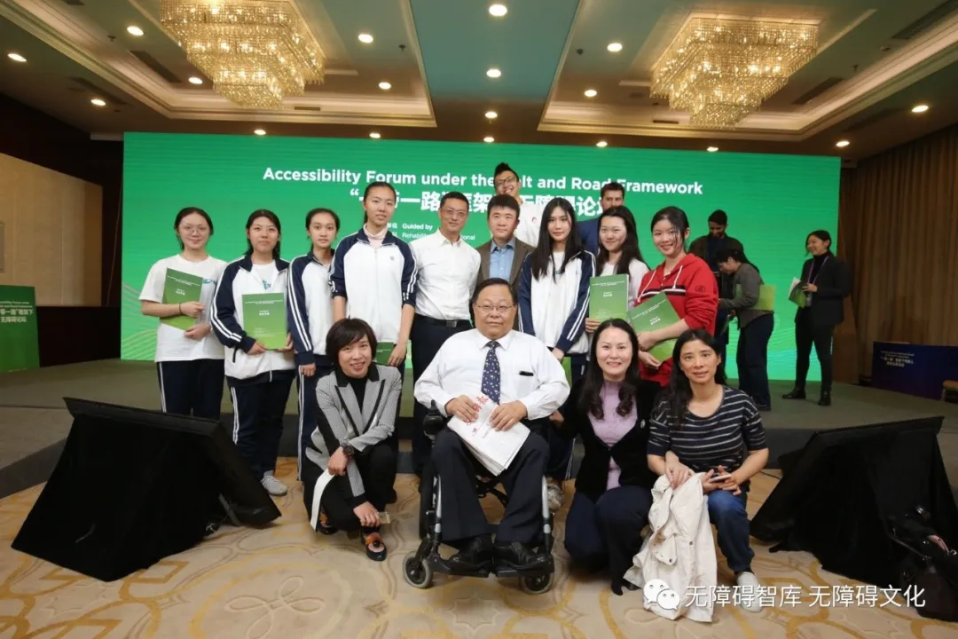 圖2:參加“一帶一路”框架下無障礙論壇的協(xié)會、使團、研修營小伙伴與嘉賓合影在無障礙的天地間,他們就像一株株拔節(jié)生長的小苗,每次相見都有初逢般的驚喜,都有一股震憾人心的力量!一張張青春朝氣的笑臉、一個個信念堅定的目光,一句句感動心靈的話語,總會開啟人們對無障礙事業(yè)的新認知、新視野、新憧憬……怎會忘記,他們的第一次亮相,第一次走進人們的視線是在2016年4月23 日。那一天,清華大學無障礙發(fā)展研究院成立,在那個值得載入中國無障礙史冊的成立儀式上,飽受嚴重類風濕性關節(jié)炎折磨致殘已坐輪椅13年的清華大學計算機博士生矣曉沅,帶領著他的團隊走上了講臺,拉起一面“清華大學學生無障礙發(fā)展研究協(xié)會”的旗幟,他們宣誓要為推動我國的無障礙事業(yè)奉獻青春。那一刻,在場的所有人都為之感動。人們看到了,這是“自強不息、厚德載物”清華精神的傳承,看到了身殘志堅的清華學子那種優(yōu)秀、高尚與不屈的品格,看到了我國無障礙事業(yè)后來者的學識與風采。當時,清華校園紫荊花盛開,建校105周年的旗幟與耕耘無障礙新天地的希望,交相輝映,格外誘人!