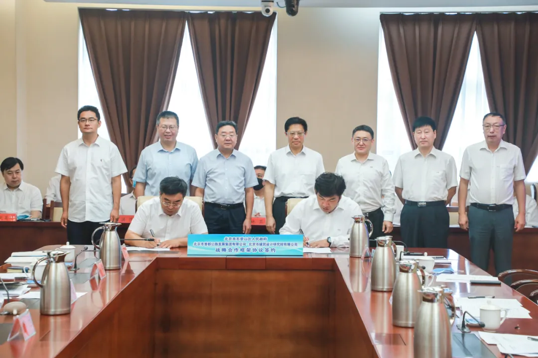 2020年8月5日,北京市建筑設(shè)計研究院有限公司與石景山區(qū)政府簽署戰(zhàn)略合作協(xié)議。同日,石景山區(qū)政府還與北京市首都公路發(fā)展集團有限公司簽署戰(zhàn)略合作協(xié)議。北京市國資委黨委書記、主任張貴林,石景山區(qū)區(qū)委書記常衛(wèi),北京建院黨委書記、董事長、總建筑師徐全勝,首發(fā)集團黨委書記、董事長張閩參加簽約儀式。石景山區(qū)區(qū)委副書記、區(qū)長李新主持簽約儀式。