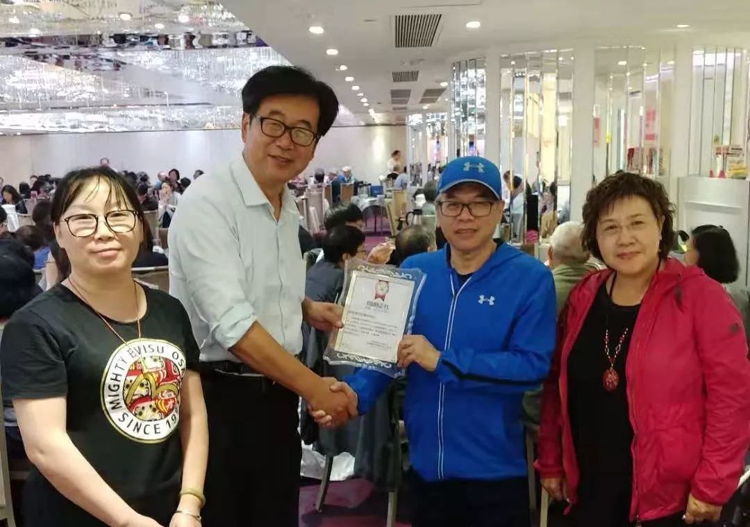 研修營領(lǐng)隊呂志強(qiáng)教授、張燕春助理向香港傷青會鍾錦樹副主席、何雪梅秘書長贈答謝狀