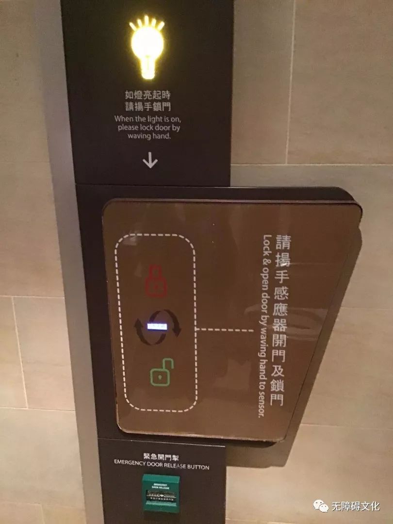 圓方無障礙洗手間感應(yīng)開關(guān)門、感應(yīng)鎖開門、應(yīng)急開關(guān)細(xì)節(jié)