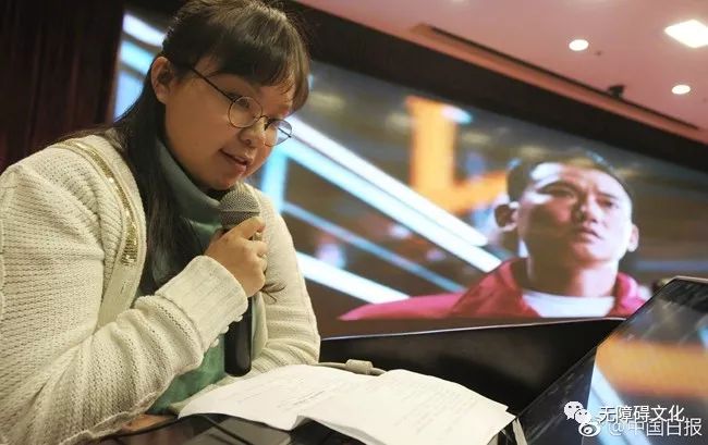杜誠誠為盲人講電影 圖片來源:中國日報