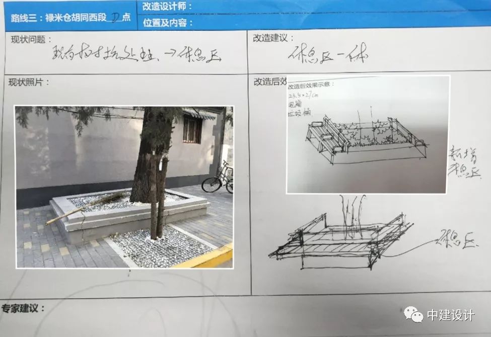 改造建議:將樹(shù)坑和休息區(qū)一體化設(shè)計(jì)