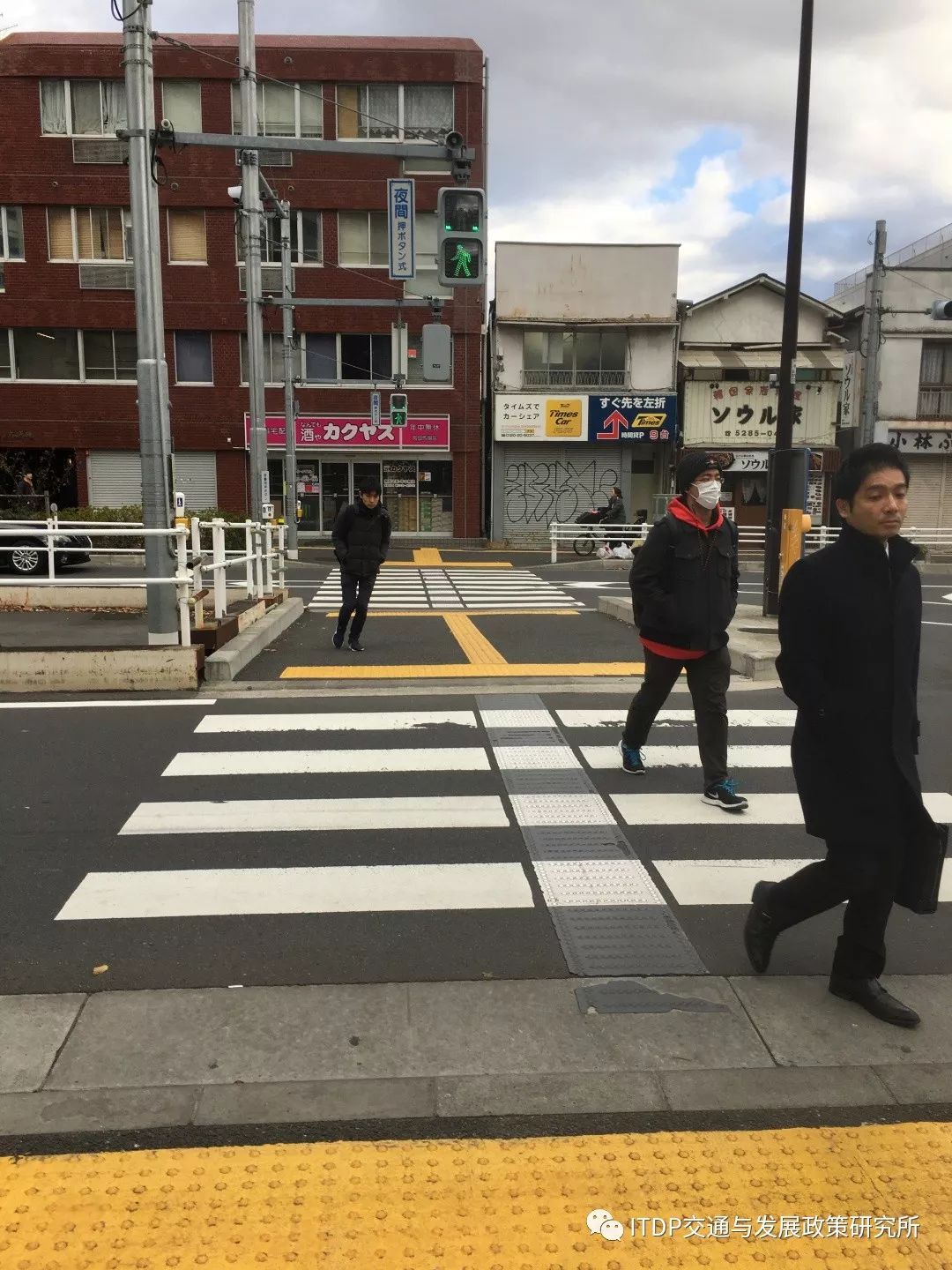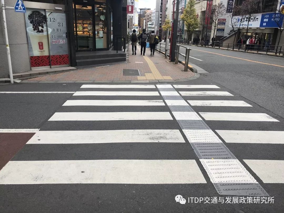 日本東京某路口處人行橫道上的盲道