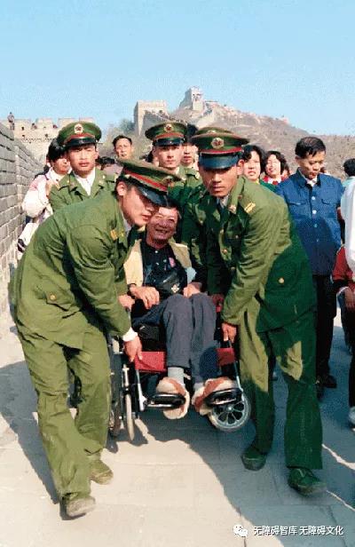 1988年3月,中國(guó)殘聯(lián)第一次代表大會(huì)時(shí),呂世明副主席是一個(gè)親歷見證者。當(dāng)時(shí)與會(huì)的肢殘人代表有許多是用兩只手爬行著進(jìn)出會(huì)場(chǎng),或是用兩只胳膊撐著一個(gè)小板凳、或劃著小滑輪車進(jìn)出會(huì)場(chǎng),當(dāng)年的輪椅也算是奢飾品。絕大多數(shù)殘疾人代表是第一次參加代表大會(huì)、第一次到北京來、第一次到天安門和長(zhǎng)城。當(dāng)時(shí)調(diào)動(dòng)了一個(gè)連的武警戰(zhàn)士上百人,4、5位戰(zhàn)士負(fù)責(zé)抬一個(gè)重度殘疾人,從長(zhǎng)城腳下硬是把幾十位重度殘疾人推、拉、扛、抬上了長(zhǎng)城的烽火臺(tái)。3月的北京很寒冷,可是抬著他的五位戰(zhàn)士汗流浹背、氣喘吁吁,但是他們的雙腿卻始終堅(jiān)挺著穩(wěn)穩(wěn)前行。到了長(zhǎng)城三分之二段時(shí),他真是于心不忍了,再三勸戰(zhàn)士們止步,他們堅(jiān)決不同意,無奈之下只能說自己的身體支撐不了了,他們這才勉強(qiáng)停下。上長(zhǎng)城不易,下長(zhǎng)城則更難了,還要保證絕對(duì)安全。所以這個(gè)情景在他的心靈深處,一輩子也忘不了。雖然“不到長(zhǎng)城非好漢”是呂世明心中期盼以久的夢(mèng),但他下定決心,如果是讓人家抬,就再也不上長(zhǎng)城了!