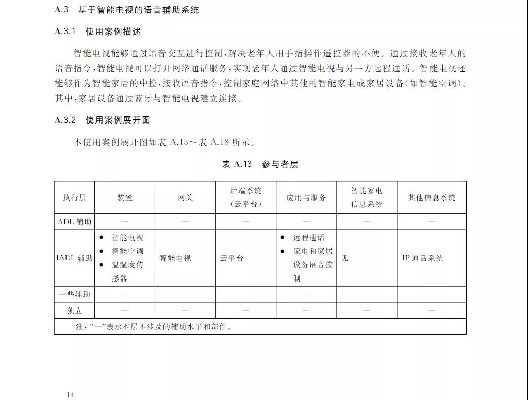 該標(biāo)準(zhǔn)給出了輔助老年人生活的智能家電系統(tǒng)三維架構(gòu)模型及具體應(yīng)用案例,使相對(duì)抽象的三維模型具體化,可視化,為幫助相關(guān)方更好地理解和運(yùn)用系統(tǒng)架構(gòu)模型進(jìn)行產(chǎn)品、系統(tǒng)的開發(fā)設(shè)計(jì)提供指導(dǎo)。有助于促進(jìn)智能居家養(yǎng)老產(chǎn)品和系統(tǒng)的規(guī)范化、市場(chǎng)化發(fā)展,有效保護(hù)老年消費(fèi)群體的利益,幫助老年人提高生活質(zhì)量,對(duì)于促進(jìn)老年用品創(chuàng)新升級(jí),增加老年用品供給具有積極作用。