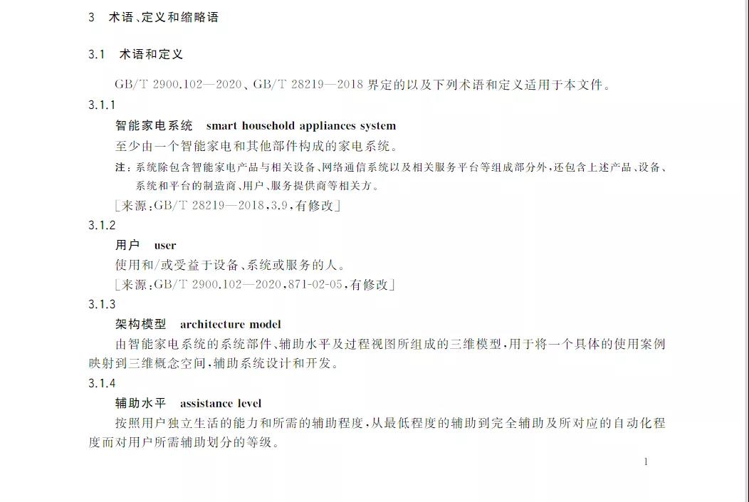 用于老年人生活輔助的智能家電系統(tǒng) 架構(gòu)模型(GB/T 40439-2021)