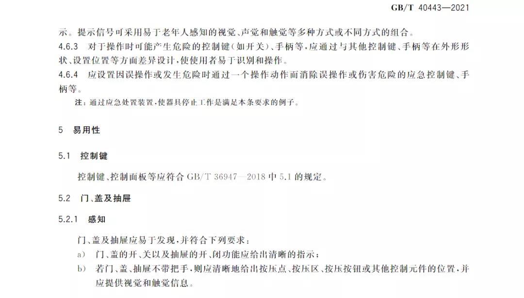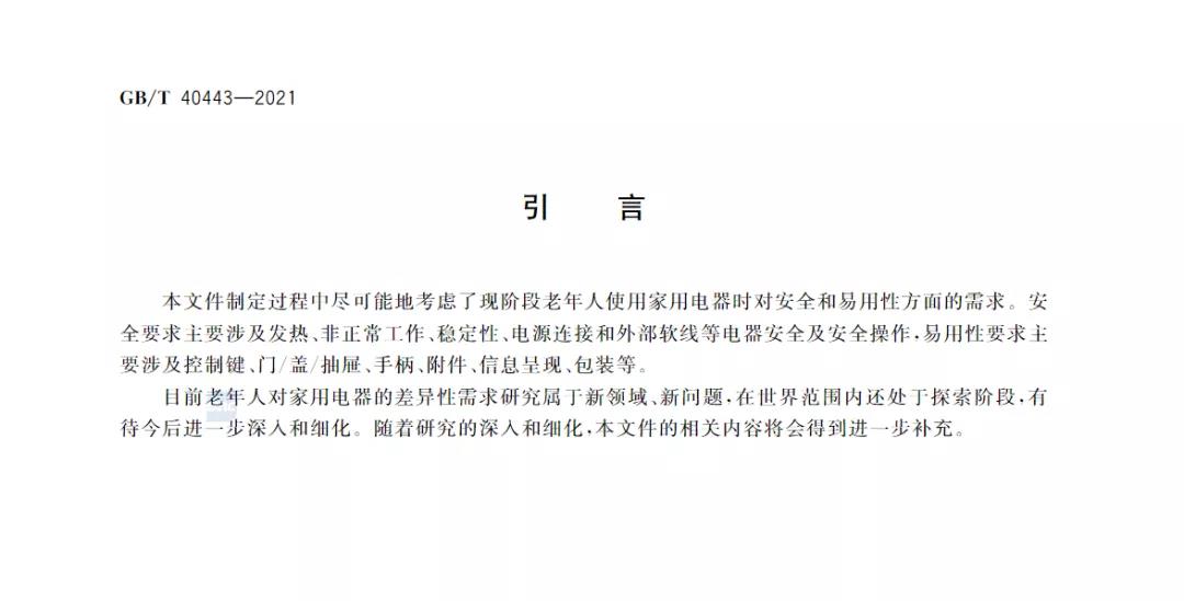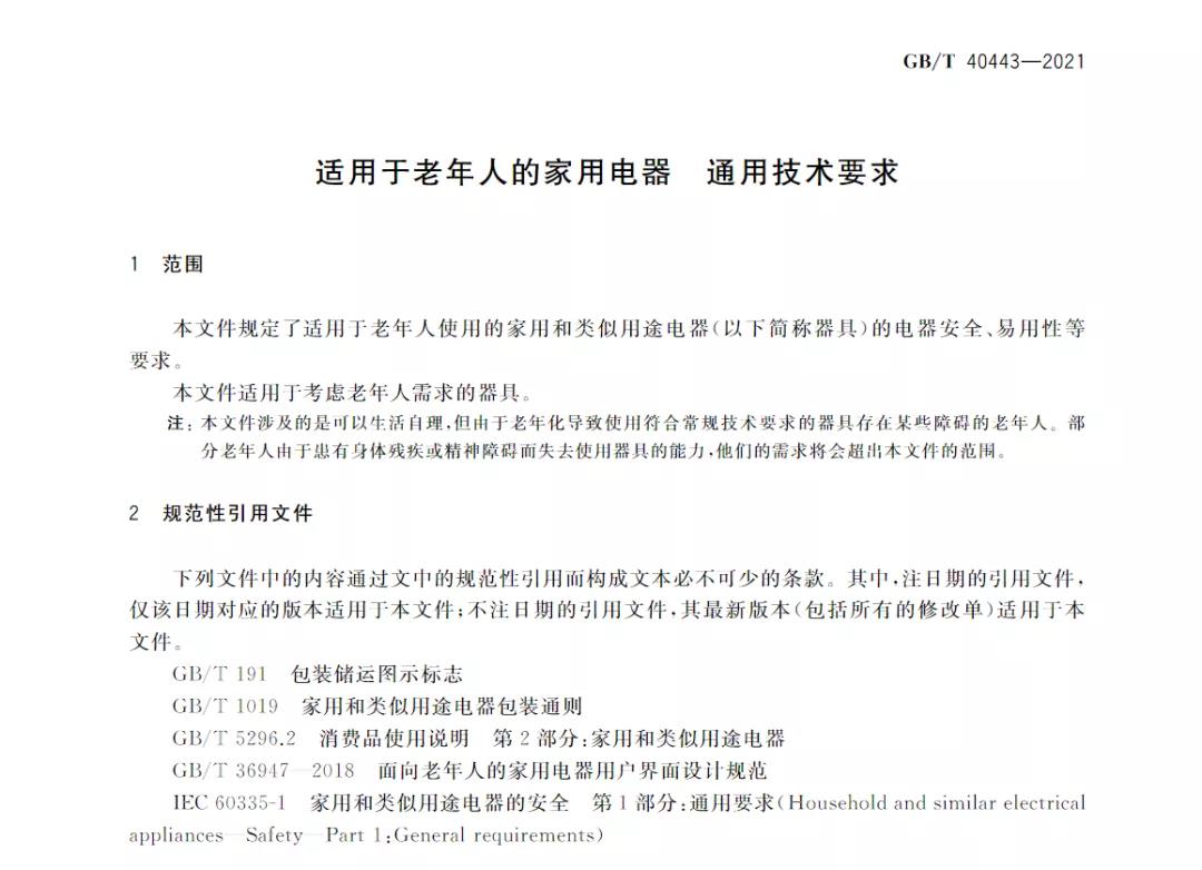 適用于老年人的家用電器 通用技術(shù)要求(GB/T 40443-2021)