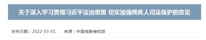 以習(xí)近平同志為核心的黨中央高度重視殘疾人事業(yè)發(fā)展,對殘疾人格外關(guān)心、格外關(guān)注。加強(qiáng)對殘疾人的司法保護(hù)是學(xué)習(xí)貫徹習(xí)近平法治思想的必然要求,是落實(shí)全面依法治國部署的重要標(biāo)志,是新時代殘疾人事業(yè)高質(zhì)量發(fā)展的基本內(nèi)容,是回應(yīng)廣大殘疾人殷切期盼的務(wù)實(shí)舉措。為進(jìn)一步推動各級人民法院、人民檢察院、公安機(jī)關(guān)、司法行政機(jī)關(guān)、殘聯(lián)深入學(xué)習(xí)貫徹習(xí)近平法治思想,切實(shí)加強(qiáng)殘疾人司法保護(hù),促進(jìn)殘疾人全面發(fā)展、實(shí)現(xiàn)共同富裕,制定以下意見。