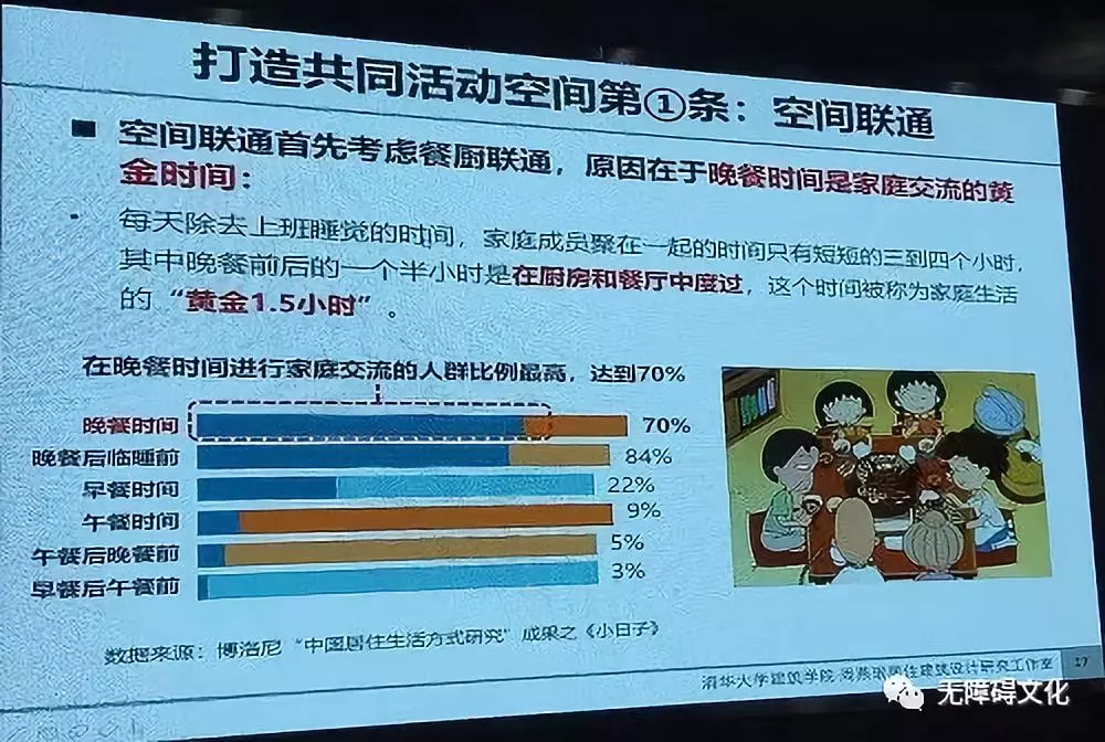聽周燕珉教授的講座,從始至終被一種濃濃的溫情、親情所包圍,每一個(gè)案例絕非想象中的冰冷設(shè)計(jì),而是處處彰顯“以人為本”的設(shè)計(jì)。“做有溫度的住宅設(shè)計(jì)”傳遞出的不正是“無障礙文化”所追求的通用、安全、舒適這樣的理念嗎!