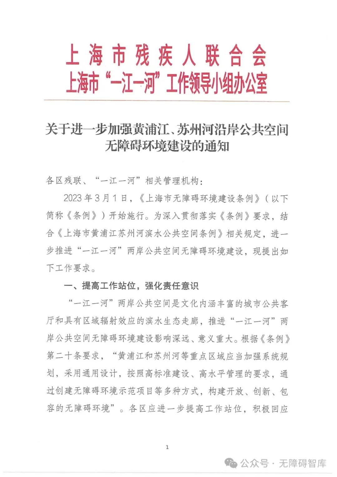 【重點項目】上海市《關(guān)于進一步加強黃浦江、蘇州河沿岸公共空間無障礙環(huán)境建設(shè)的通知》