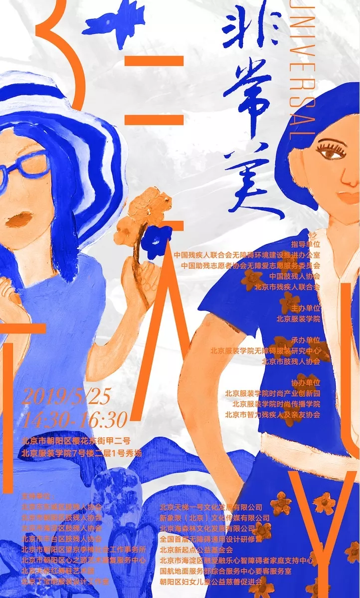 此次服裝秀由指導(dǎo)單位中國殘疾人聯(lián)合會無障礙環(huán)境建設(shè)推進(jìn)辦公室、中國助殘志愿者協(xié)會無障礙志愿服務(wù)委員會、中國肢殘人協(xié)會、北京市殘疾人聯(lián)合會,主辦單位北京服裝學(xué)院,承辦單位北京服裝學(xué)院無障礙服裝研究中心、北京市肢殘人協(xié)會,協(xié)辦單位北京服裝學(xué)院時尚產(chǎn)業(yè)創(chuàng)新園、北京服裝學(xué)院時尚傳播學(xué)院以及北京市智力殘疾人及親友協(xié)會共同舉辦。