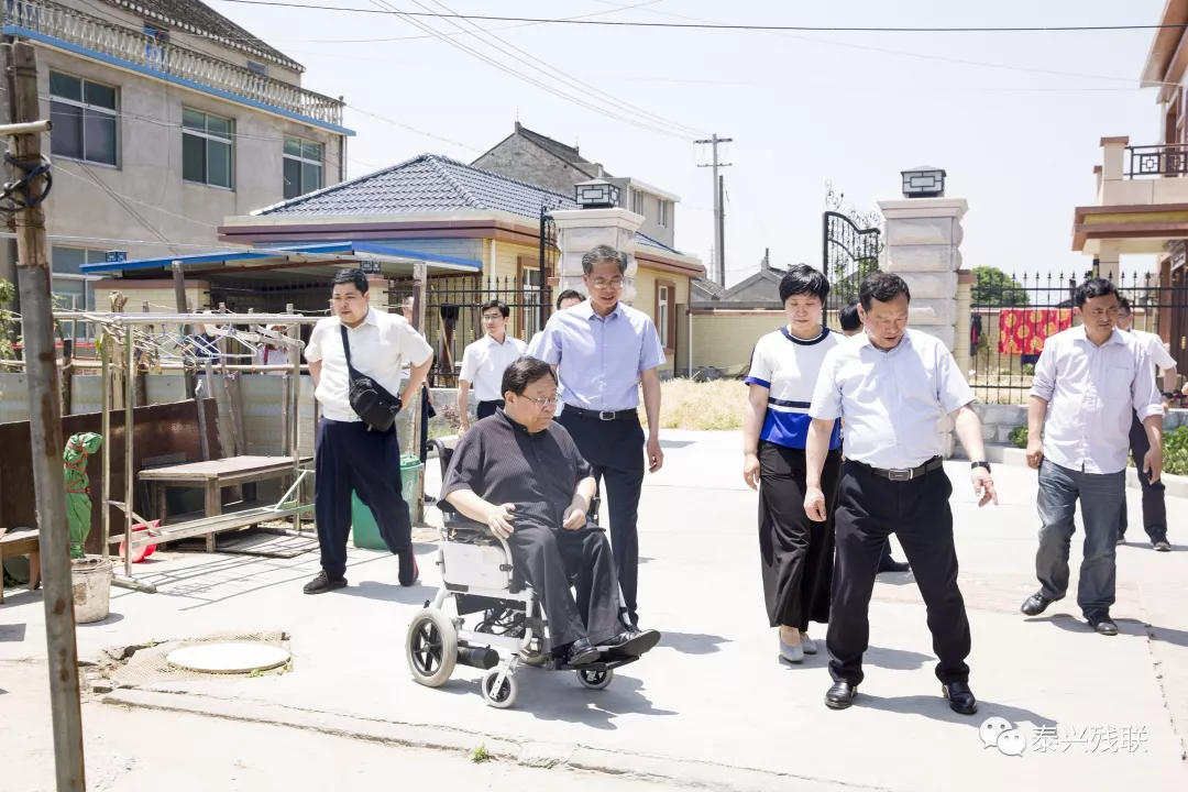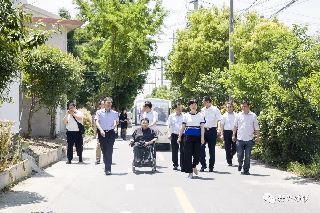 5月23日上午,中國殘聯(lián)副主席呂世明考察調(diào)研黃橋鎮(zhèn)祁巷村無障礙環(huán)境建設(shè)情況。江蘇省殘聯(lián)黨組書記、理事長萬力,泰州市殘聯(lián)黨組書記、理事長欒斌,泰興市政府副市長謝紅官,黃橋鎮(zhèn)人大主席洪飛陪同考察。
