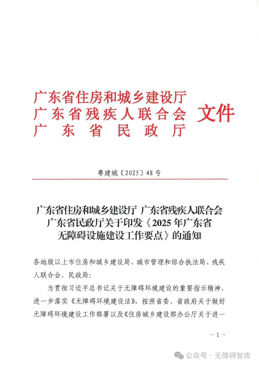 【重點關注】廣東省住房和城鄉(xiāng)建設廳 廣東省殘疾人聯(lián)合會 廣東省民政廳關于印發(fā)《2025年廣東省無障礙設施建設工作要點》的通知