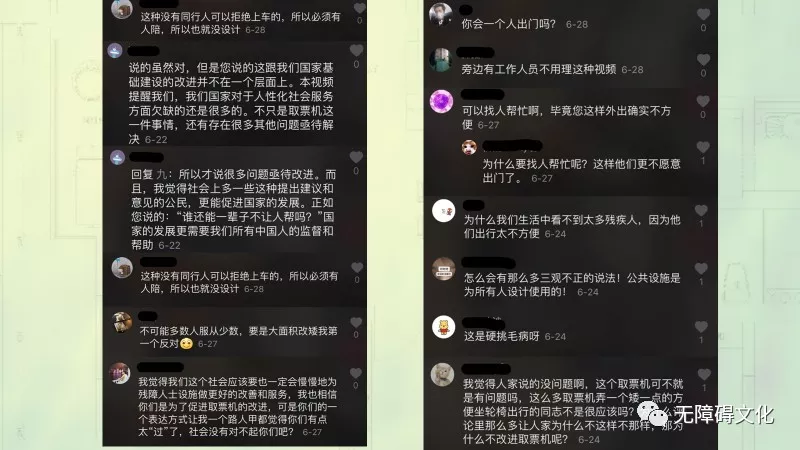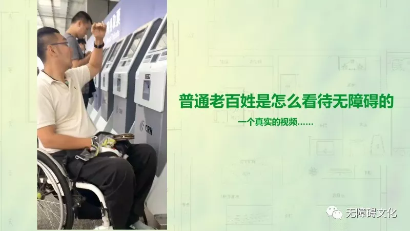 杜老師給我們講了一個真實(shí)的故事。研修營經(jīng)常會到各地考察無障礙情況,有次在火車站取票,面對高高的的取票機(jī)的不便,拍了一個視頻。上傳到抖音之后,有各種的觀點(diǎn)。