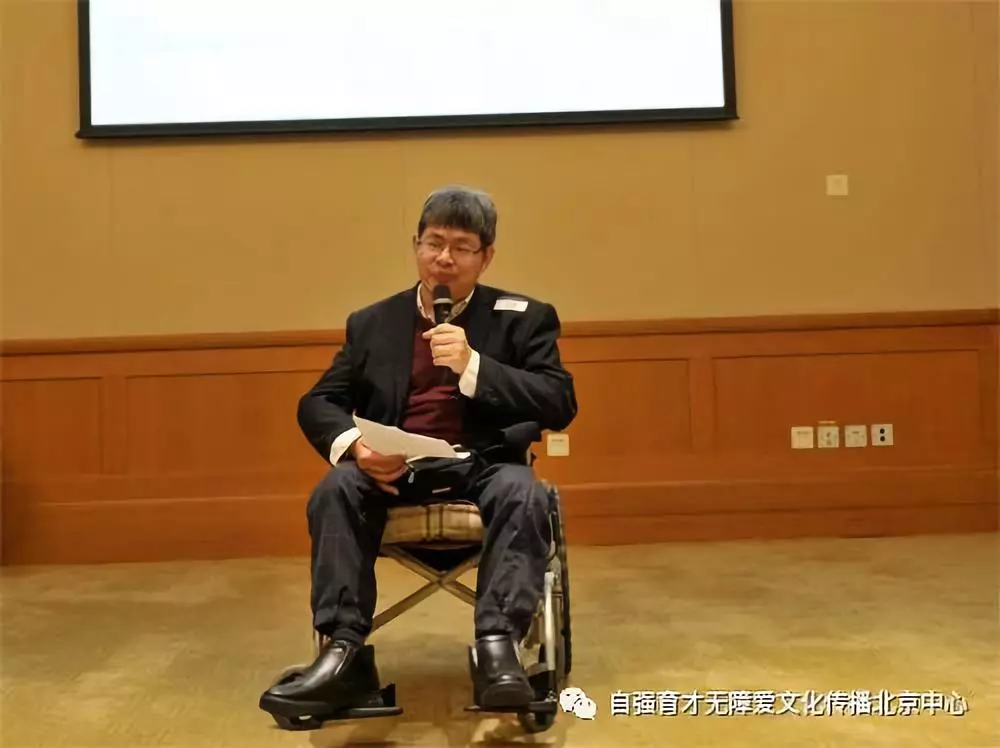圖為:福建省自強(qiáng)助殘助學(xué)基金會(huì)發(fā)起人、全國自強(qiáng)模范輪椅教授鄭聲滔