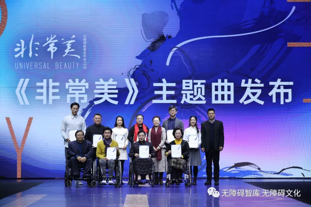 在活動中,舉行“非常美”主題曲首發(fā)式?!胺浅C馈敝黝}歌,由瀟萍譜曲,駱燕作詞,4位歌手分別是北京市懷柔區(qū)肢殘人協(xié)會主席宋繼鴻,中國康復研究中心音樂治療師、錄音師宋宜川,北京服裝學院在讀學生徐子超、梁馨茹,他們殘健融合激情演繹。中國殘聯(lián)副主席呂世明、北京市殘聯(lián)理事長吳文彥代表北京服裝學院無障礙服裝研究中心向歌曲創(chuàng)作團隊頒發(fā)榮譽證書。