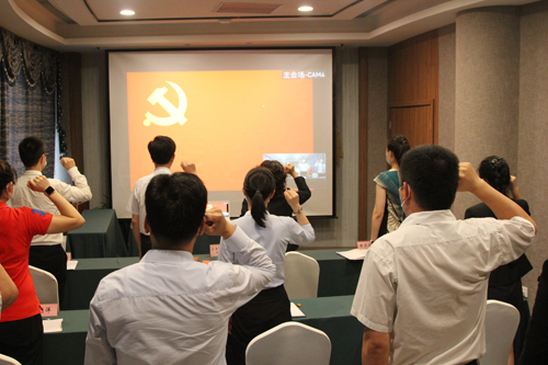 會議首先舉行了隆重的重溫入黨誓詞儀式。呂世明同志作為領(lǐng)誓人,帶領(lǐng)全體黨員面對鮮紅的黨旗,再次莊嚴宣誓:“我志愿加入中國共產(chǎn)黨……對黨忠誠,積極為黨工作,為共產(chǎn)主義奮斗終身……”。鏗鏘有力的宣誓聲,一字一句,神圣而豪邁,強烈震撼著每一位黨員,使每一位黨員再一次接受了心靈的洗禮,表達了全體黨員時刻不忘初心、矢志永遠奮斗的決心。