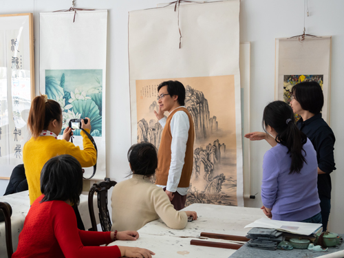 活動(dòng)特邀上海書畫出版社副編審,上海書畫院特聘畫師,上海青年藝術(shù)界聯(lián)合會(huì)理事張恒煙參加。從藝術(shù)創(chuàng)作到生活趣事,張恒煙和大家分享靈感與生活的聯(lián)系,他認(rèn)為畫家不僅要學(xué)習(xí)技法,更要注重日常積累,多走多看,打開眼界,才能有明顯進(jìn)步。參與活動(dòng)的各區(qū)中國(guó)畫愛好者暢所欲言,交流著各自創(chuàng)作心得。