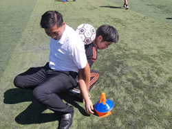 首先開展的足球康復(fù)課程上,受疫情影響半年多沒有開展戶外活動(dòng)的陽光之家學(xué)員們,沐浴著秋日的陽光,在諾寶中心綠蔭場(chǎng)上,盡情的奔跑著,歡笑著。教練先帶領(lǐng)大家進(jìn)行了基本的足球訓(xùn)練,隨后志愿者和學(xué)員們進(jìn)行了融合活動(dòng),共同完成了雙人背夾球的互動(dòng)游戲。游戲需要兩人一組背夾著足球前進(jìn)至目標(biāo)地點(diǎn)并取回標(biāo)志物,期間球不能落地,否則需要返回起點(diǎn)重新來過。志愿者和學(xué)員們都是第一次合作,有的組很快就找到了竅門,配合默契,前進(jìn)速度很快,有的組則擔(dān)心球會(huì)掉,走的小心翼翼,但大家都竭盡全力,互不相讓。經(jīng)過兩輪比拼,最后女生組獲得了勝利。