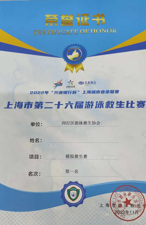 11月28日上午,2022年“興業(yè)銀行杯”上海城市業(yè)余聯(lián)賽第二十六屆上海市游泳模擬救生比賽在浦東游泳館舉行,來自上海各區(qū)共20支隊伍參加比賽。經(jīng)過激烈角逐,由諾寶中心游泳館謝常禮、楊洪兵、吳加明、李超四人組成的閔行區(qū)游泳協(xié)會代表隊技壓群芳,榮獲模擬救生比賽項目第一名!