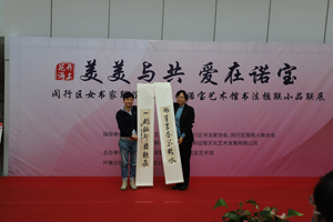 開幕式上,女書家代表向諾寶藝術(shù)館捐贈(zèng)了書法作品,寄望“諾寶藝術(shù)館”成為閔行書法美術(shù)界和閔行殘疾人藝術(shù)家藝術(shù)港灣。諾寶中心副總經(jīng)理王毅受贈(zèng)作品,并回饋女書家代表收藏證書。諾寶藝術(shù)館將發(fā)揮場(chǎng)地、服務(wù)、推廣等方面的優(yōu)勢(shì),進(jìn)一步聚合社會(huì)力量,努力為閔行區(qū)的文化活動(dòng)搭建新的平臺(tái),為殘疾人的藝術(shù)創(chuàng)作和交流提供新的舞臺(tái),助力殘疾人平等融入社會(huì)。