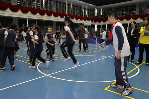 本次比賽是“七寶童心圓”“樂享運動”系列活動之一,賽事分設中學組和小學組兩個板塊,每個隊有12名隊員,男女各半。比賽時兩人搖繩,其余隊員以“8”字形式依次循環(huán)跳繩,賽時為三分鐘,在規(guī)定時間內跳數(shù)多者獲勝。