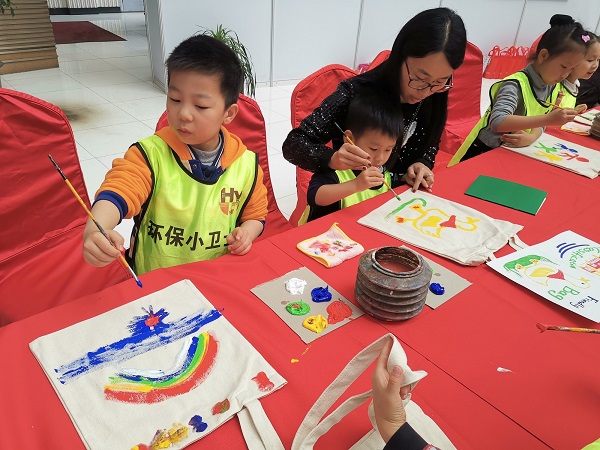 上海興東環(huán)??萍加邢薰粳F(xiàn)場進行了垃圾分類知識的宣傳介紹,通過垃圾分類趣味游戲,加深親子家庭對垃圾分類的認識。尚想繪·創(chuàng)意空間的老師們現(xiàn)場指導小朋友們繪制環(huán)保袋,傳播環(huán)保意識。