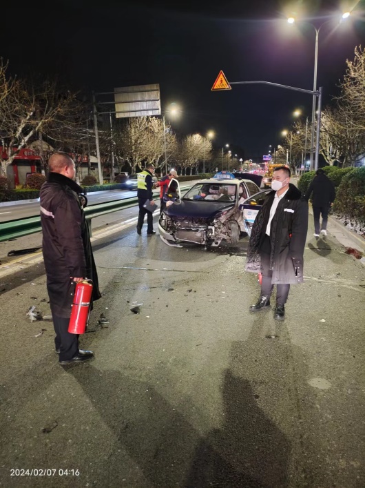 2月7日凌晨4點(diǎn)10分,諾寶中心微型消防站突接閔行區(qū)消防應(yīng)急指揮中心呼叫:漕寶路美奕公寓(漕寶路星東路以東30米處)附近路段發(fā)生交通事故,引起車輛起火,區(qū)消防中隊(duì)已經(jīng)趕往現(xiàn)場(chǎng)處置,要求諾寶中心微型消防站立刻派人支援。