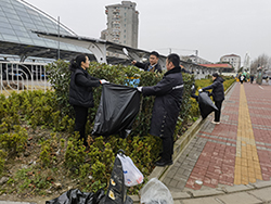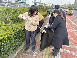 3月6日,黨支部組織黨員來(lái)到漕寶路人行道綠化帶,開(kāi)展“清理綠化、保護(hù)環(huán)境”行動(dòng)。黨員們分成四個(gè)小組,分別負(fù)責(zé)包干不同區(qū)域,撿拾或清除綠化叢中的各種垃圾。有些垃圾“躲藏”在綠地深處,黨員們不顧臟,不怕臭,用夾子抓,用竹竿挑,甚至身體鉆進(jìn)綠化密植里,再用手把這些垃圾“捉”出來(lái)。經(jīng)過(guò)大家的共同努力,一個(gè)干凈整潔的綠化面貌逐步呈現(xiàn)。