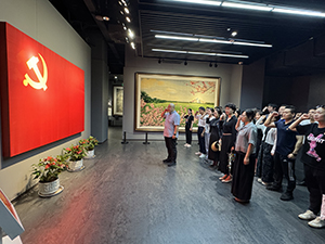 祭掃儀式后,大家進(jìn)入龍華烈士紀(jì)念館參觀學(xué)習(xí)。展廳通過文字、圖片、影像及實(shí)物講述了自辛亥革命以來257位革命先烈的事跡。在講解員的講解下,一個個意氣奮發(fā)的革命青年,為初心信仰誓死抗?fàn)?、忠貞不屈的英烈形象便呈現(xiàn)在大家眼前。令人難忘的全息舞劇《血染桃花紅滿天》更是運(yùn)用多媒體技術(shù),再現(xiàn)了龍華二十四烈士的事跡,大家身臨其境,感受到烈士們在追求共產(chǎn)主義理想道路上的拋頭顱、灑熱血、無畏艱難、英勇就義的高尚情操。在展廳的黨旗前,全體黨員在支部書記張京津的帶領(lǐng)下,重溫了入黨誓詞,感悟最初入黨時的那份赤子之心。