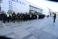 上午8點40分,演習(xí)隊伍集結(jié)完畢,公司總經(jīng)理顧秀萍作了戰(zhàn)前動員。隨后演習(xí)總指揮、總經(jīng)理助理黃懿韻下達指令,演習(xí)正式拉開帷幕。模擬火點設(shè)定在公司“蘭晶劇場”,因“舞臺線路短路”引發(fā)“火災(zāi)”,現(xiàn)場立即營造出緊張的緊急疏散氛圍。