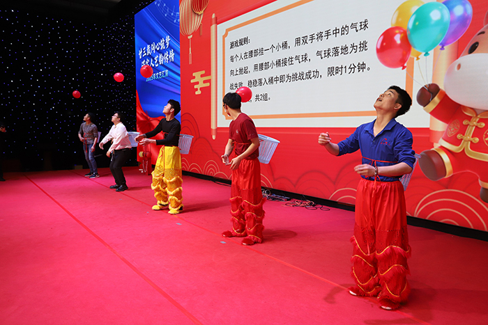 酒店事業(yè)部率先登場(chǎng),帶來(lái)創(chuàng)意舞蹈《天獅舞風(fēng)》,靈動(dòng)舞步盡顯一線服務(wù)團(tuán)隊(duì)的熱情與巧思;隨后的互動(dòng)游戲“飛翔的氣球”笑聲不斷,跨部門(mén)搭檔默契配合,拉近了彼此距離。人事、財(cái)務(wù)、工程等職能部門(mén)聯(lián)袂獻(xiàn)唱《光陰的故事》,熟悉的旋律喚起集體記憶,仿佛帶大家重溫了并肩奮斗的歲月;康體事業(yè)部則以動(dòng)感舞蹈《不被定義的我們》展現(xiàn)青春朝氣,詮釋健康向上的團(tuán)隊(duì)風(fēng)貌?!俺载洿蟊绕础比の督恿夥胀葡蚋叱保瑓f(xié)作與歡笑中,團(tuán)隊(duì)凝聚力悄然升溫。