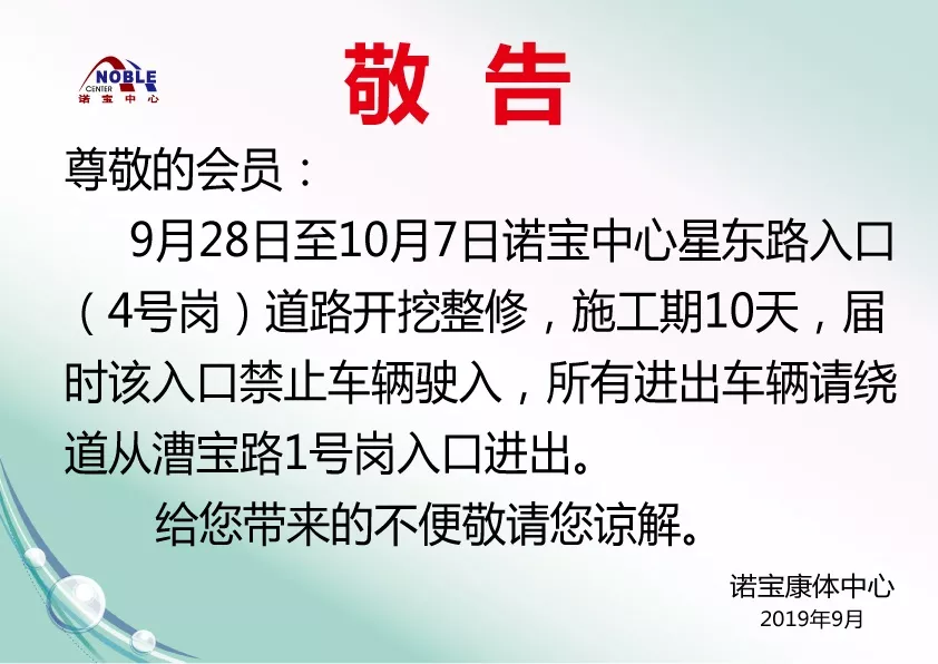 敬告 | 關(guān)于諾寶中心星東路入口道路整修需繞道進入的通知