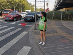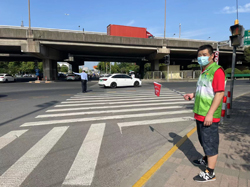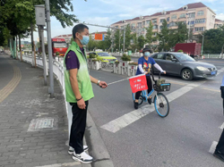 大部分行人和騎車人對(duì)志愿者的勸導(dǎo)表示支持和理解,但也有個(gè)別人不理解、甚至嘲諷志愿者。在這種情況下,志愿者依然耐心解釋,用一張張笑臉,一個(gè)個(gè)手勢(shì),一句句溫馨的提示傳遞著文明出行的理念。盡管早晨還不是一天中最熱的時(shí)候,但在毫無(wú)遮擋的地面道路上,還是能感覺到滾滾熱浪撲面而來。志愿者們的衣服被汗水浸濕,隨即又被太陽(yáng)曬干了。黨員李春海站立的路口正好是陽(yáng)光直射,不僅身上的衣服透濕,手臂上布滿了汗珠,連鞋底也感覺發(fā)燙。炎炎烈日下,四名黨員志愿者靚麗的身影成為漕寶路外環(huán)路十字口最美的一道風(fēng)景線。