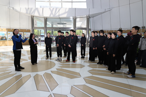 座談會前,特藝中心在滬全體演職員參觀了上海諾寶。諾寶中心總經(jīng)理顧秀萍帶領(lǐng)大家前往蘭晶劇場、諾寶藝術(shù)館、球類館、健身房、跳操房、游泳池等場所參觀,并逐一進(jìn)行介紹。當(dāng)看到酒店大堂屏幕播放的“歡迎中國殘疾人藝術(shù)團(tuán)回家”醒目大字,演員們神色激動(dòng),情不自禁拍起手來。